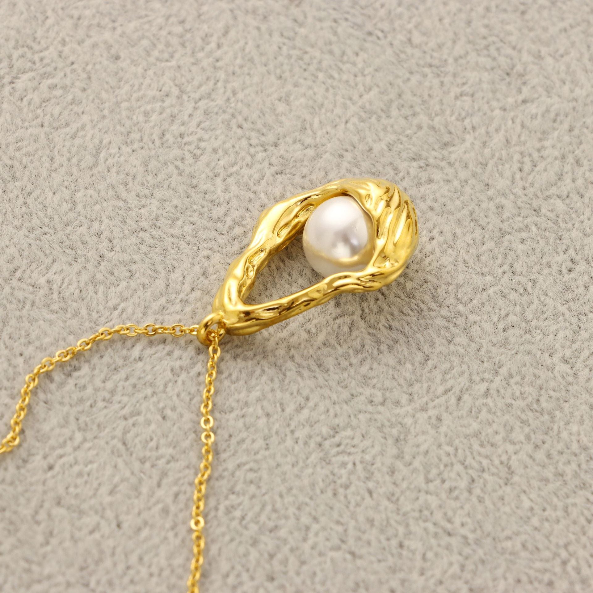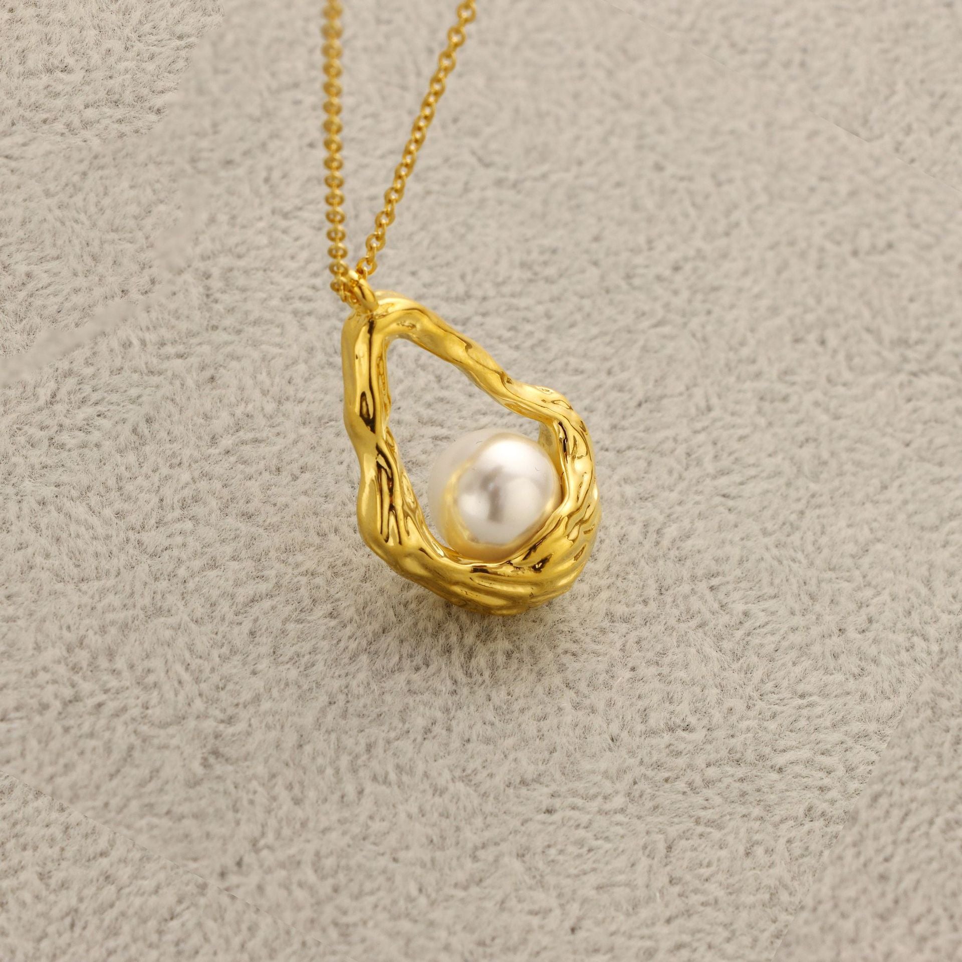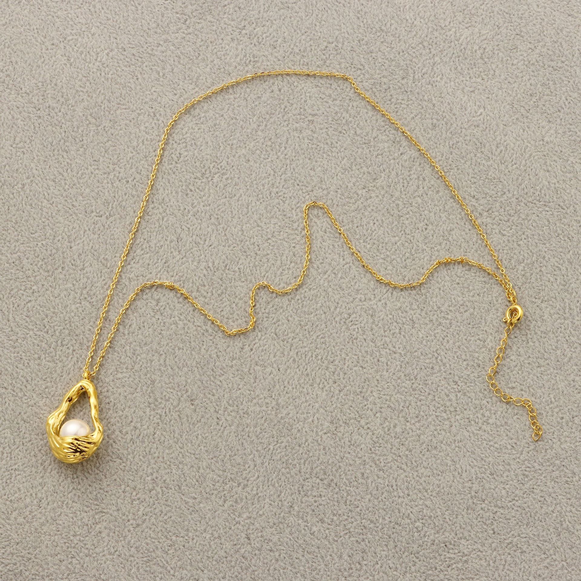 Inlaid Pearl Flower Basket Pendant Necklace Female Brass Electroplated 18K Gold Clavicle Chain